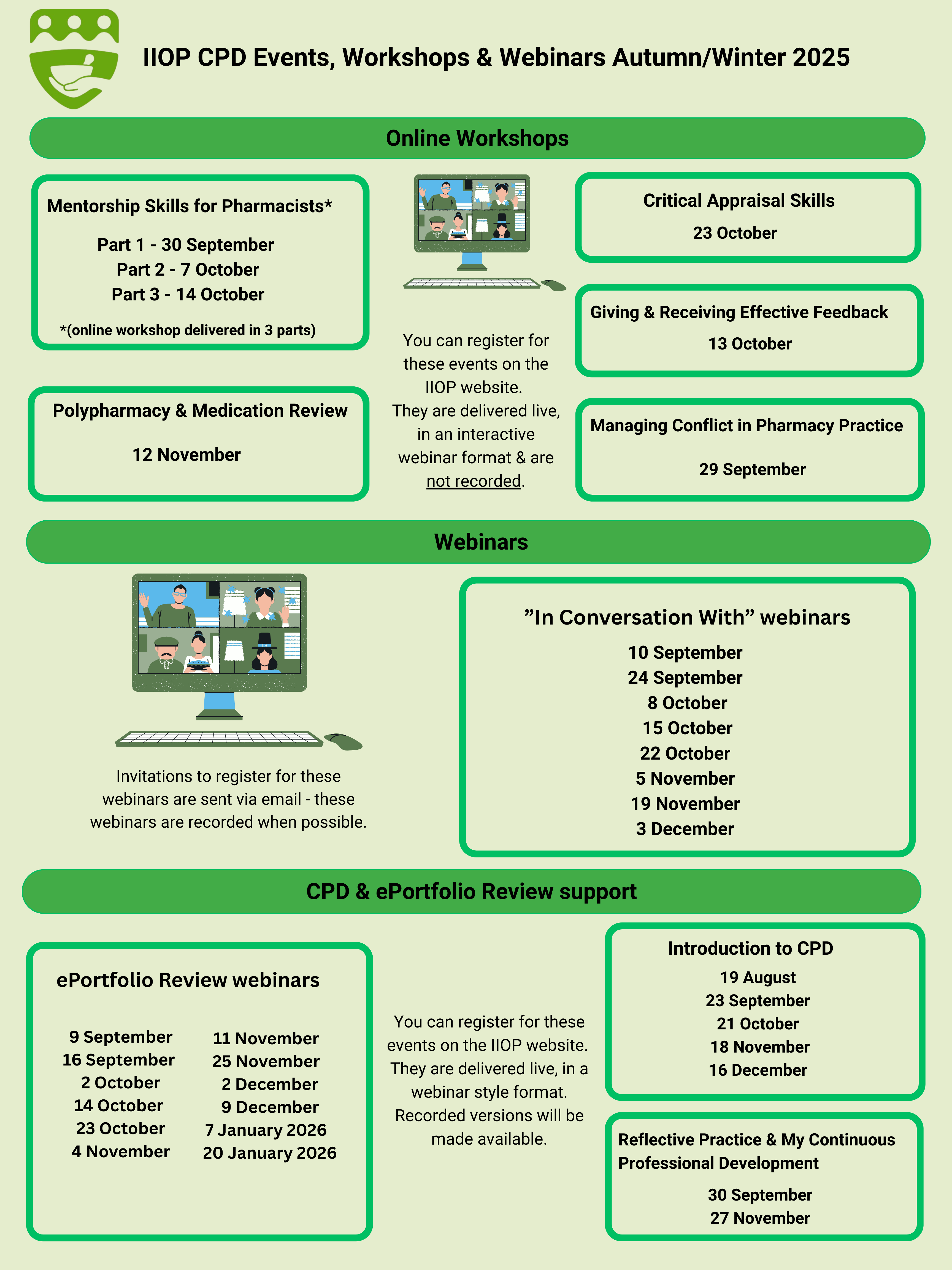 The IIOP are delighted to offer a range of workshops, webinars and CPD events this autumn and winter. The upcoming events include the following: