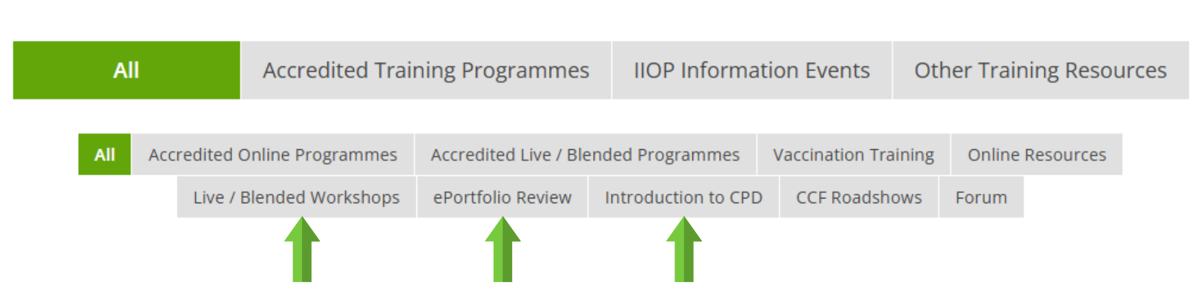 To find out more about each event and to book a place go to the IIOP website (make sure you are logged in to your IIOP account). Depending on the type of event, webinar or workshop you wish to attend, select the corresponding tab as demonstrated below. .